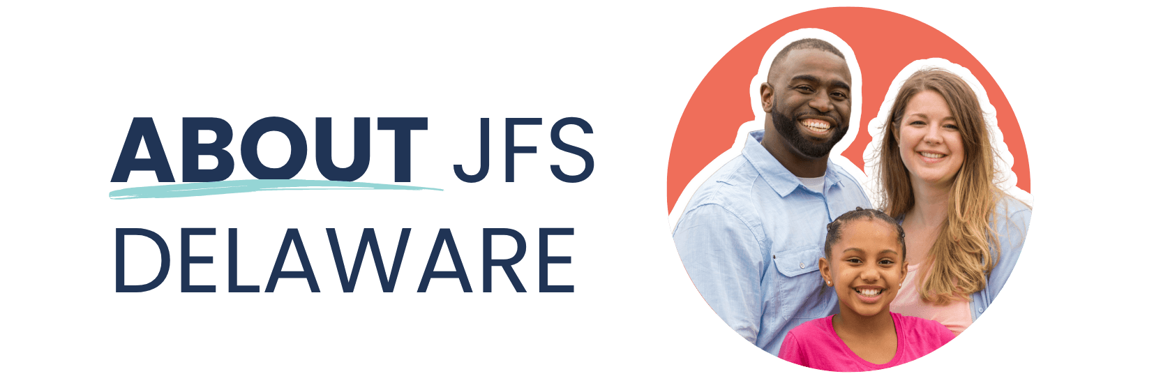 JFS is a place where all members of our community can receive help and support to overcome life’s challenges and cope with difficult situations. Since 1899, we have been committed to providing the highest quality services available in our area, with compassion and respect for everyone. Click here to learn more about JFS Delaware.
